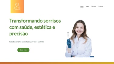 Modelo de site institucional voltado para dentistas que atuam com estética, clareamento e prevenção.