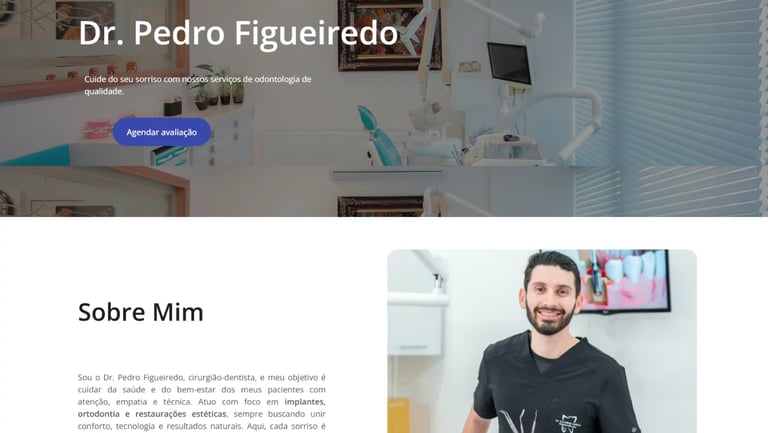 Este site combina modernidade com funcionalidade, ideal para clínicas odontológicas que oferecem implantes e ortodontia. O design valoriza imagens de resultados, depoimentos e chamadas para ação. Integração com WhatsApp, agendamento online e responsividade garantem uma experiência completa para o paciente desde o primeiro contato.
